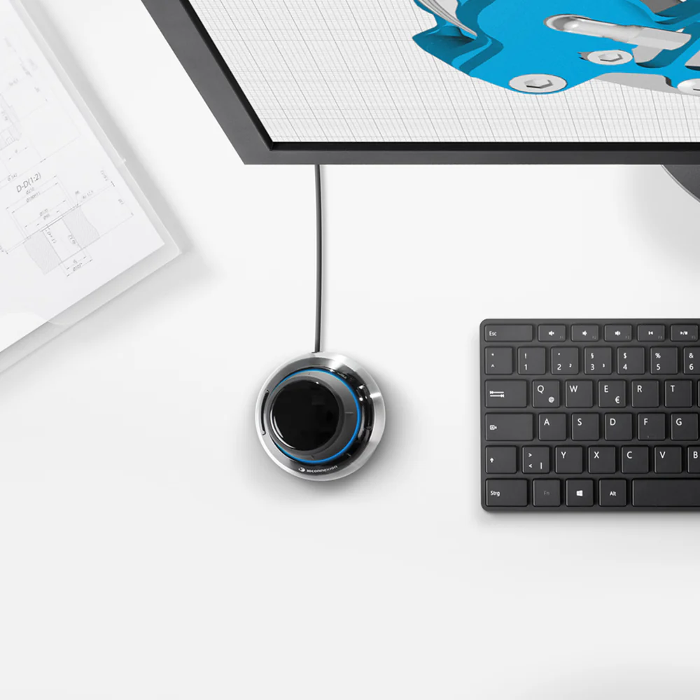 • Two-Handed Power: Designed to be used alongside a standard mouse; one hand positions the model with the SpaceMouse while the other selects and edits with the mouse, significantly increasing workflow efficiency.